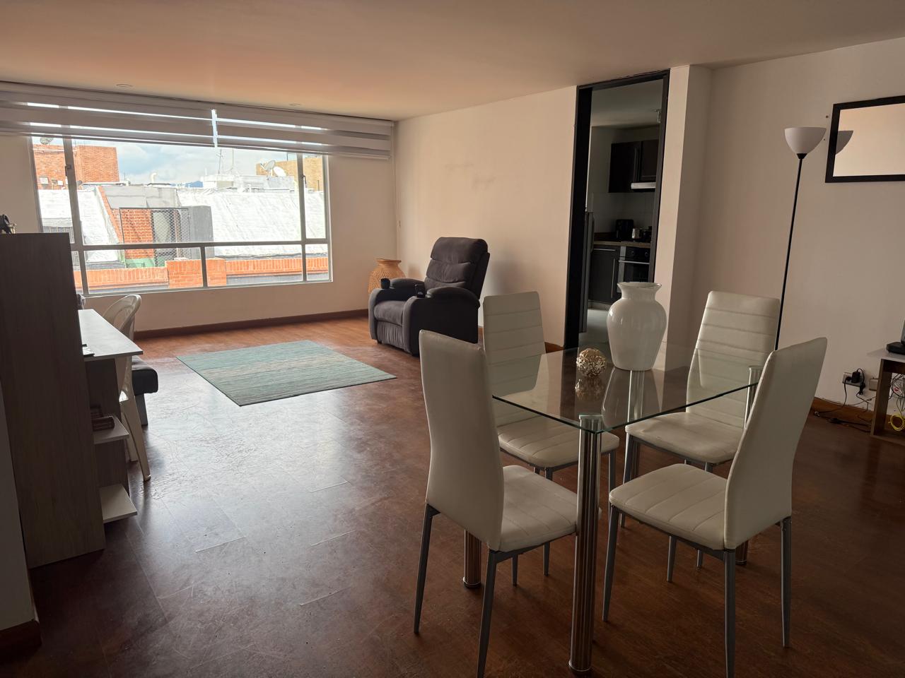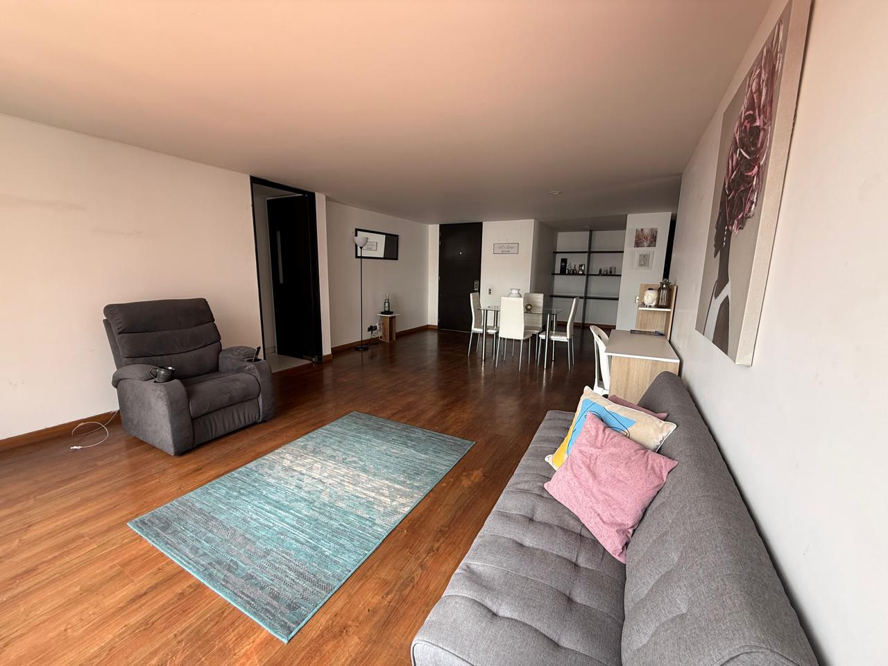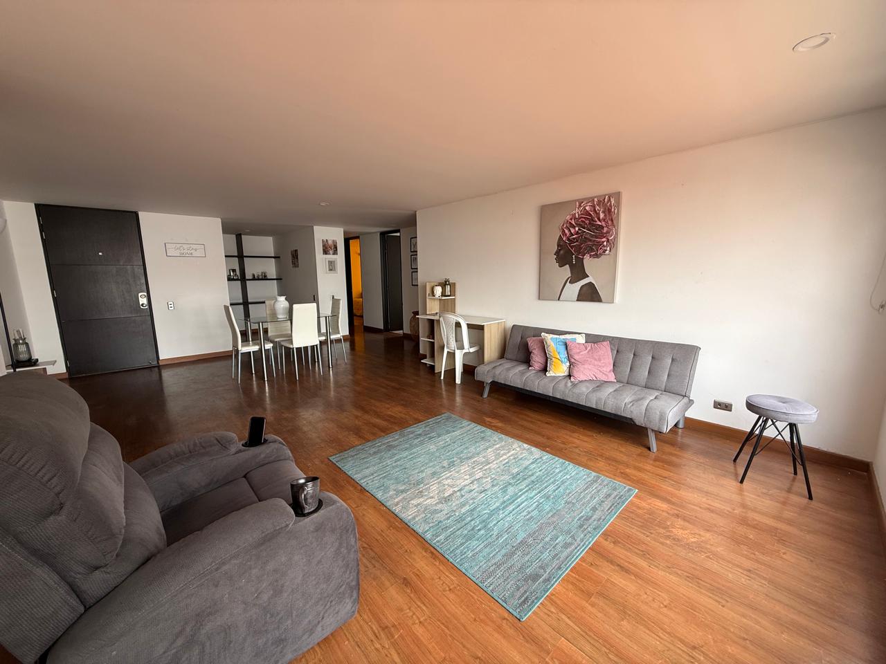 AR trae para ti este espectacular Apto de 105M2 ubicado en una de las morejones zonas de Bogota, el Apto esta ubicado en un piso séptimo con vista exterior, consta de piso laminado cortinas cocina cerrada lineal con estufa a gas, una habitación principal con baño, 2 habitaciones auxiliares que comparten baño social completo, closet de linos, sala comedor amplios, calentador a gas, sus servicio públicos so estrato 4 y cuenta con electricidad, gas agua y alcantarillado, además cuenta con 1 garaje y 1 deposito.